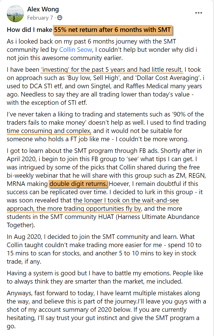 He learned about SMT through Facebook ads, and decided to join the Facebook group to ‘see’ what insider tips he can get.