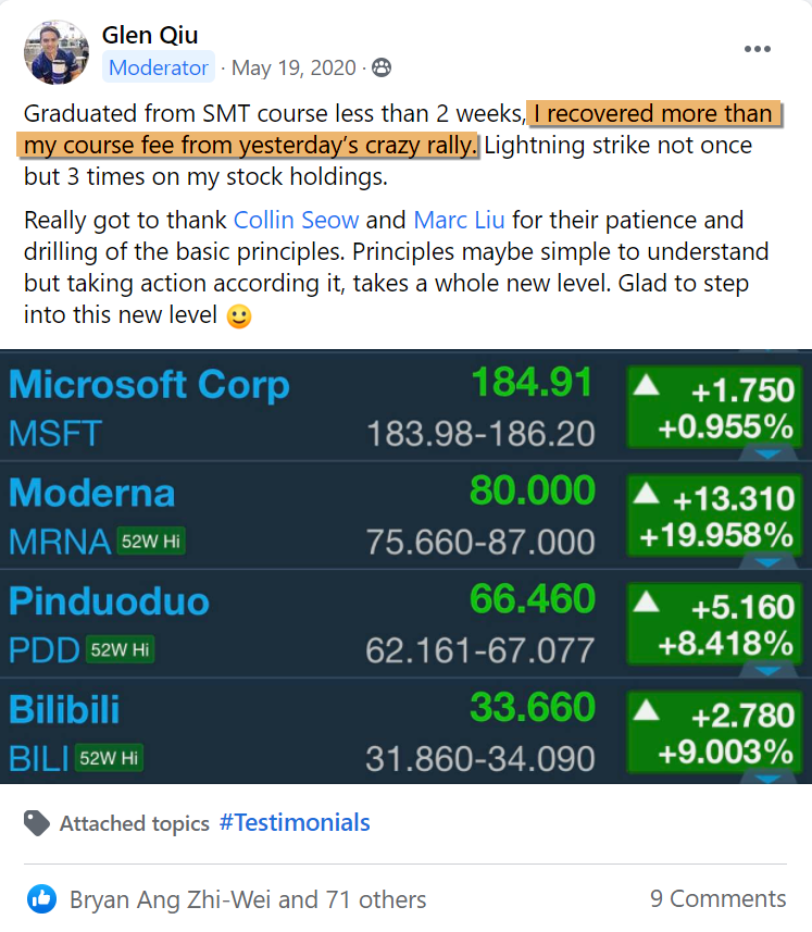 However as time passes, he realised that he had no system to screen, enter and exit for his trades. He did not get to learn how to fish for his meals but relied heavily on others for his investments.