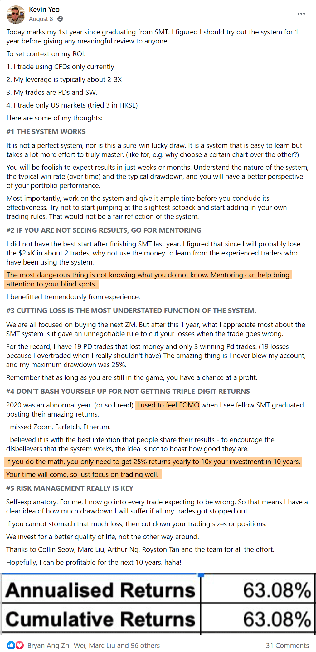 Hence, he realized that the most dangerous thing is not knowing what you do not know. This is why he decided to invest money to learn from experienced traders who have been using the system to get a better perspective of his portfolio performance and learn how to consistently trade well.